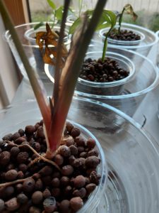 Vielleicht habe ich in Blähton mit ihr mehr Glück als in Erde. Ich bin gespannt was passiert, wenn ich ihr zum ersten Mal etwas Dünger gebe. Das wird nicht viel sein, da sie sich immer noch in der Umstellung von Erdwurzeln auf Luftwurzeln befindet.